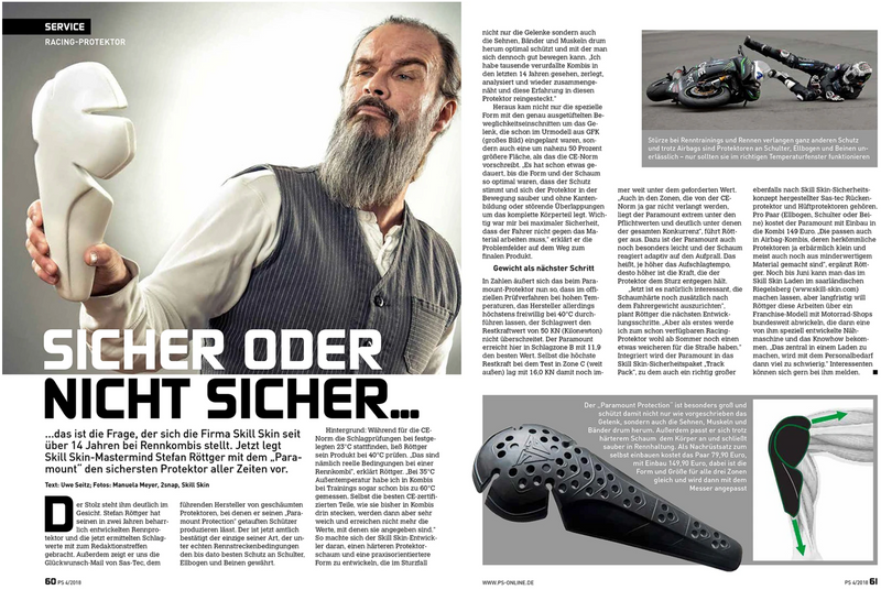 Skill Skin beschäftigt sich seit vielen Jahren mit der Entwicklung von Protektoren für den Motorradrennsport. Firmengründer Stefan Röttger hat mit dem „Paramount“-Protektor ein Modell geschaffen, das höchste Ansprüche an Sicherheit erfüllt. Wir freuen uns, mit einem Partner zusammenzuarbeiten, der wie wir kompromisslos auf Schutz und Qualität setzt.